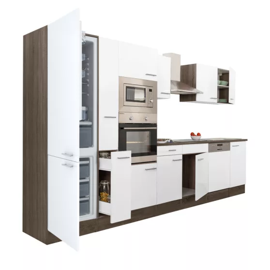Yorki 370 Beépíthető konyhabútor Tölgy korpusz selyemfényű fehér fronttal 370 cm Sütős/mikrós kamraszekrénnyel