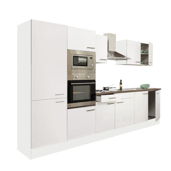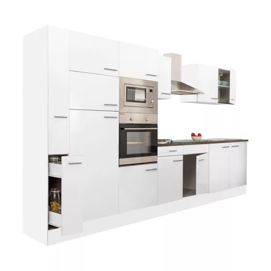 Yorki 360 Beépíthető konyhabútor Fehér korpusz selyemfényű fehér fronttal 360 cm Polcos kamraszekrénnyel